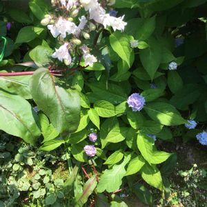 なんか咲き始めてはいるんだけど 徒長してグネグネと大変な状態。本当は真っ直ぐ立つんだと思うんだが…リシマキア ボジョレーだったと思われ。 【追記】どうもリシマキアではなくて、捜索願いの出ていたペンステモン ハスカーレッドの巨大化したもののようですw その下のは2年前に安くなっていたと言って息子が買ってきてくれた紫陽花。ようやく開花しましたが小さな花のタイプ?名前はわからない。