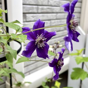 クレマチス・夜明け前が咲いてくれましたが、去年より一回り小さいような…。肥料が足りなかったのでしょうか。それとも環境があってない? それでもこの深い紫とふわふわ軽やかな咲き姿が見られて嬉しいです。ペンステモンとのコラボも見せてくれました・4枚目。