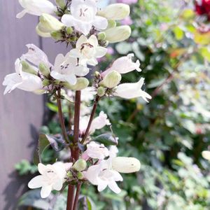 ペンステモン ハスカーレッド 咲きました。 白が際立ちキレイ😍