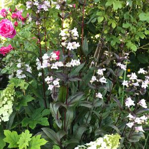 オバタス→ダークタワー→ゴールドフィンガーに続いてペンステモン ハスカーレッドの花が咲き始めました🌿 他の方のハスカーレッドのpic見てると我が家のダークタワーにそっくりなものもありましたが、我が家の庭で咲いたのは銅葉に白っぽいお花でした。 ペンステモンは庭にないのを見かけるとどうしても置いてこれなくて分かってるだけでも9種類は植わってます😅
