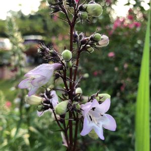 おはようございます😊 今日は昨日と違って薄曇り☁️なので庭に出るのが楽しい日です🥰 去年の秋に見つけたペンステモン ハスカーレッドが咲きました💕 花茎の根元しか無かった苗なのでどんな花かなぁと楽しみに待ってました💕 葉の色も花の色も花姿も何とも言えない涼しげなお花でした🥰 宿根草なのでこれからの為にも夏越し頑張ります😊✊