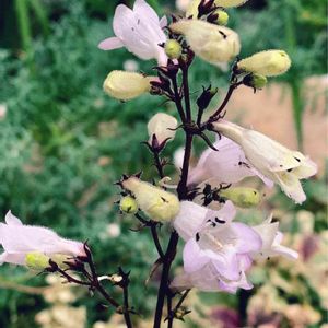 ペンステモン ハスカーレッドの花部分のアップです🥰 ロゼット状の濃い緑の葉っぱも素敵ですがお花もニュアンスカラーで素敵です🥰