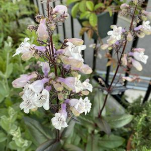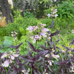 ペンステモン ハスカーレッド 地植えで2株育っています。 銅葉と紫がかった白い花がステキです。