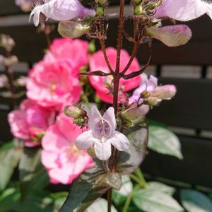 おはようございます 曇り🌥️だけど蒸し暑くなりそうね ①咲いたよーペンステモン、一昨年買ってずっと待ってました ②セロリ、細いし硬いし💦でも旦那に無理矢理食べさす😎 ③植え替え失敗したけど頑張って咲いてくれました👏👏 ④スイカズラ好き、だけど臭い😅 ⑤憎きバラゾウリムシ、白が好きみたい、毎日何匹退治してるかわからん😓