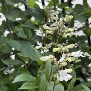 🏷️白い水曜日♡ 参加します🤍 庭の「ペンステモン ハスカーレッド」が咲き始めました☺️💕🤍 微かに紫がかった白いお花が涼やかです💜🤍 このところ急に蒸し暑くなって、今日やっとエアコンのお掃除やりました💦😅 熱中症気をつけましょう🥤