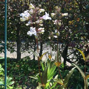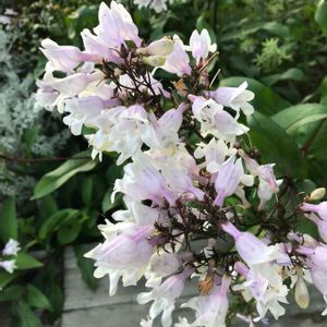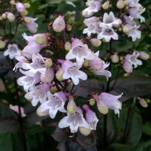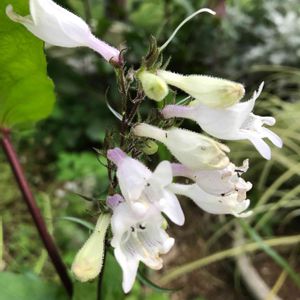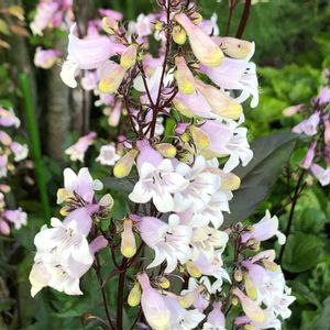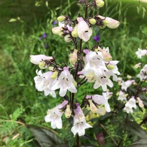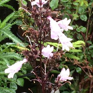 白地に桜色がかった花 銅葉の葉と茎 花だけでなく葉っぱも美しい✨ ペンステモン ハスカーレッド❤️ 背高さんでゆらゆら風に揺れいます (*´꒳`*)可愛い💕