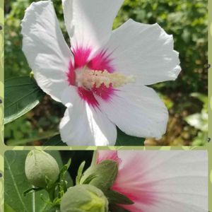 先日 Upの つぼみ 開花しました💖 槿(ムクゲ) 白祇園守(シロギオンマモリ)