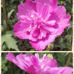 八重のムクゲさん。🌸 2番手咲いた〜まだ蕾いっぱいあります。🎶🎶💓