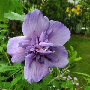 ムクゲ 青いシフォン 去年から育てている株ですが、今年の一番花が咲きました✨株も大きくなって蕾がたくさんついてるので、これからが楽しみです😆