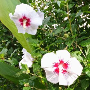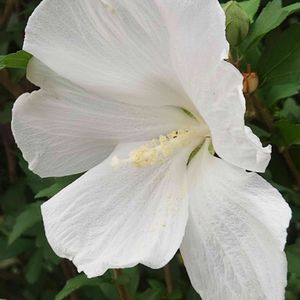 今日の 庭の花 (1) ムクゲ アオイ科 フヨウ属 白い花びらは 清々しいです🤗