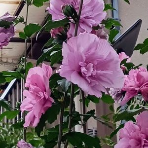 今年も優しいお顔で咲き出したピンク八重のムクゲさん♡雨に負けないでいっぱい咲いてね〜(#^.^#)赤紫はこれからです♡