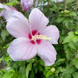出先で、雨の中美しく咲く木槿を見つけました☂️