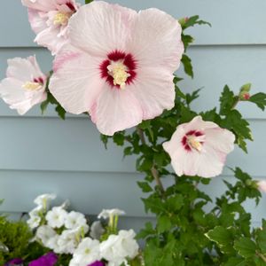 八重のムクゲ 去年剪定した枝を植木鉢に挿しておいたら花が咲きました❣️ めちゃラッキー💕