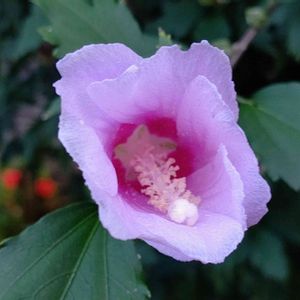 おはようございます(❁´ω`❁) 薄紫のムクゲさん6月からポツポツ咲いてくれています💜 明日は大雨☔️☔️降るのかな〜 今日も一日頑張りましょう╰(*´︶`*)♡