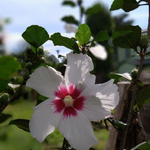 こんにちは😊 💞今日のお花 ムクゲ 清楚な白いムクゲです。 公園や街路樹でも良く見かけますが、強い花木だそうですねぇ😄