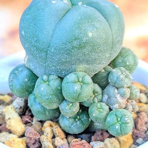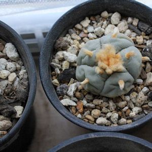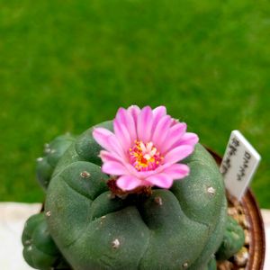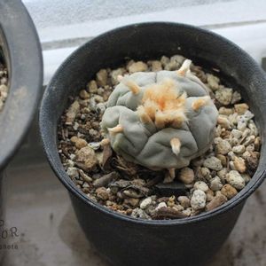 ロフォフォラ属 子吹き鳥羽玉 初めて花が咲きました。
