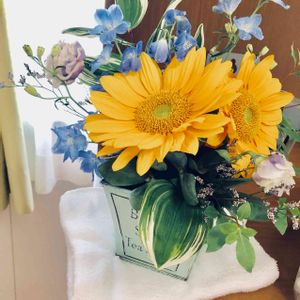 先日のレッスンでの作品です。 大好きな色味でした! でも、大きなお花をいれるとバランスが難しく、課題がたくさん。かんばらなきゃ。