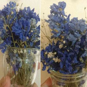 ドライフラワーにしてしまったので、分からないかもしれないと覚悟をして… みなさまに質問させて頂きました。 濃い青と薄い青の花、何かお分かりになる方いらっしゃるでしょうか。。