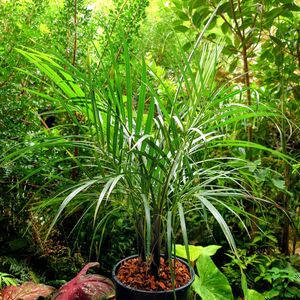 ■Satakentia liukiuensis🌴 ・ヤエヤマヤシ 3000種以上あるヤシの中で、最も美しいと言われるだけのことはあると思う。まだ片鱗しか見せてないですが、来年の成長に備え、そろそろ室内へ。 5枚目はほぼ成長してないモドキじゃない方のトックリヤシです。 最高気温18℃、最低気温14℃ ☆AIに聞きました ヤエヤマヤシ(学名:Satakentia liukiuensis)は、その希少性と優美な姿から「世界で最も美しいヤシ」とも称される、非常に価値の高い植物です。 🌎希少な自生地と保全状況 ・自生地の限定 天然の自生地は、石垣島(米原)と西表島(ウブンドル、星立御嶽周辺など)のわずか3か所にしか確認されていません。 ・国の天然記念物 これら現存する群落は、「米原のヤエヤマヤシ群落」などとして国の天然記念物に指定されており、厳重に保護されています。 ・絶滅危惧種 生育地の極端な少なさから、環境省のレッドリスト、及び沖縄県版レッドデータブックでは**準絶滅危惧(NT)**に指定されている貴重な植物です。 これらの群落を訪れる際は、自然保護のため、指定区域外の持ち出しや、生態系に影響を与える行為は厳に慎む必要があります。 ヤエヤマヤシは、南国の景観を形作る上で欠かせない、日本が誇る貴重な植物です。 ヤエヤマヤシは、ヤシ科ヤエヤマヤシ属のヤシの一種で、日本の八重山列島(石垣島と西表島)にのみ自生する固有種です。 ✨ 主な特徴 ・樹高・大きさ: 大型で、茎は直立し、高さは15〜25メートルにも達する高木です。 ・葉: 長さ4〜5メートルにもなる大きな単羽状複葉(鳥の羽のような形)を持ち、頂部にまとまってつきます。葉は光沢があり、風にたなびく姿が優美で、「世界でもっとも美しいヤシ」と称されることもあります。 ・幹: 幹は分岐せず、表面は滑らかで、葉の落ちた跡が環状に残ります。 ・別名: 別名でノヤシ(野椰子)、沖縄の方言でウラダヤシやビンドーとも呼ばれます。 🌿 生育地と保護 ・固有種: 石垣島と西表島にしか自生しておらず、絶滅が危惧されている貴重な植物です。 ・天然記念物: 石垣島の米原(よねはら)のヤエヤマヤシ群落など、自生地は国の天然記念物に指定されています。