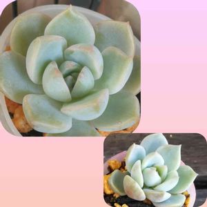 白牡丹、肉厚になってきました😄 上 本日の白牡丹 下 我が家に来たときの 白牡丹(カット苗) 一回り大きくなって肉厚で可愛い❤️ 仮住まいが狭そうだけど、植え替えした方が良いのかな❓ 白牡丹はどれ位大きくなるのかなぁ❓ 楽しみ〜🎶