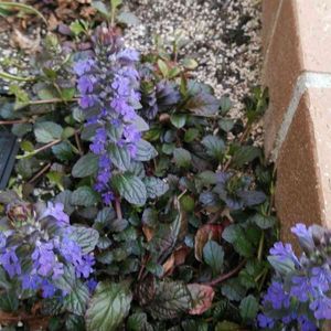 おはようございます☁☀ アジュガ、咲いてくれてます! 銅葉が、また心惹かれる〜🥰