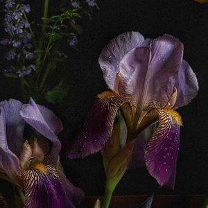 五月雨の庭、 エクゾチックな香りか微かに鼻腔を擽る Alcazar iris 毎年端午の節句に彩りを添えます。 Alcazar / Phillippe de Vilmorin (西洋十二単とキンランソウの見分けが難しい)