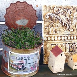 小さな花たちは…背も低く 間違ったら踏まれちゃう💦 だからた〜〜くさんの仲間たちで賑やかに咲く☝️ ここにいるよ〜ってね☺️ 鉢にいたティントクローバーは、ヒョロリヒョロリとお外へ…あ〜ダラリんだぁ😅