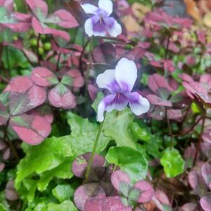 おはようございます😄 宿根ビオラのレベッカ💙💜 ティントクローバーと秋に作った 寄せ植えですが、長く咲いてくれて 爽やかな感じです💜💙 徒長気味なので、切り戻しました😌 今日も熱中症などに気をつけてお過ごしくださいね🍀