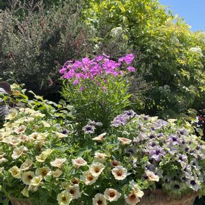 豊田市西山公園🌻🐸🌵 1️⃣寄せ植え ペチュニアの花数がすごい😍 2️⃣シェードガーデン カラーリーフがいろいろ。 紫の花🟣は AIで ウツボグサ? 3️⃣クレマチス 四季の花園も少しずつ夏花壇に。