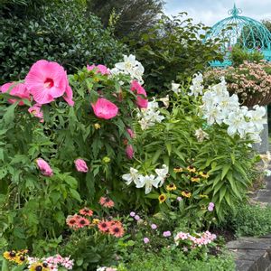 豊田市西山公園🌻🐸🌵 暑中お見舞い申し上げます♩.•*¨*•.¸¸ 1️⃣夏の花いろいろ ルドベキアとエキナセアの区別は? 分からないので、🏷️ありません🤣 2️⃣3️⃣4️⃣ペチュニア 巨大な鉢でも、花付き抜群。 5️⃣後方に、白い花集合だヨ! フロックス ユリ アガパンサス ネコノヒゲ