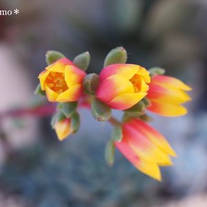 多肉、クイテンシスのお花🌼 オレンジ色で、蕾がピンク、可愛いです😍💕