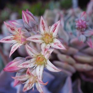 おはようございます🌵 多肉植物、ヘレナさんのお花が、ピンクで先が白くて、可愛いです😍💕 今日も素敵な一日を╰(*´︶`*)╯♡