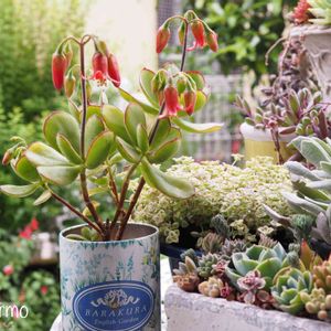 多肉、アモエナのお花、小さなベル🔔が沢山❣️ 蕾がぷっくりして、さくらんぼ🍒?いちご🍓?見たいに見えて美味しそう😍💕