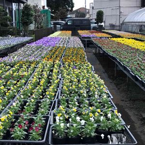 少しだけ陽が出たが、マリアの散歩の帰り道、⚡️とパラパラ雨が降って来た。 散歩で通るコンビニの裏の苗生産者のトレーにはもうパンジー、ビオラがいっぱい! 先日、種まきした家のビオラは、まだちぃちゃい🌱が出て来たばかり… HCにも、もうパンジー、ビオラがならんでいるね。