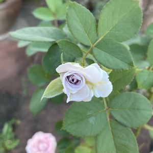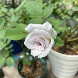 今年お迎えしたブルーグラビティの新苗🌹 気をつけて摘蕾してたのにいつの間にか咲いてた!なんて儚げ…