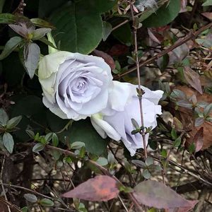 2枚目失礼します🙏 ブルーグラビティ咲きました💙💜 水色ががったシルバー💙 ブルー系のバラにしては、ロサオリで 消毒回数はレベル2の育てやすいバラです💙 開くと平べったくなってお花が大きくなったみたいになります😄 上くらいの咲き加減が綺麗かしら? 良いお天気で開花が進みそうです😄 素敵な週末をお過ごしくださいね💚