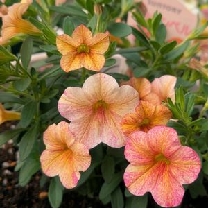 こんばんは⋆☽ お迎えしたカリブラコアたちです(*´꒳`*) ミリオンベル アンティークオレンジ、バターポップコーン🍿 ミリオンベルプチホイップ マーマレードとラムレーズン どれも可愛さ抜群です(*´꒳`*) ピンチはせずに伸びたところを少しずつ✂️⸒⸒しています😊 カプチーノはどうもうちではピンクが強くなるみたいですね( ˊᵕˋ ;)