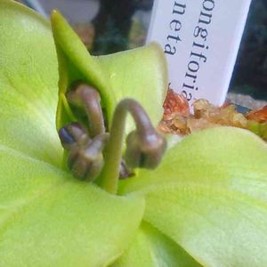 p.longifolia🌼 去年に花茎が上がってきて。今年にやっとさきました。まだ8本ほど上がってきてます。今日朝チョッとだけ凍りついていて。あわてて避難させました。何とかダメージもなく一安心。😣😣😅 食虫植物大会盛り上げ⤴⤴ていきましょう。🐮