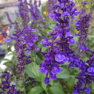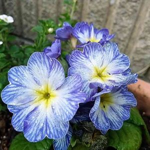 今朝の庭で可愛いコンビ❤︎ アゲラタムに寄りかかるルリマツリのお花ꕤ
