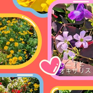 おはようございます✨ 1️⃣↩️マリーゴールド トレニアとオキザリス トレニア ベゴニアとマリーゴールド マリーゴールド 2️⃣今日のお花 台風の影響で被災された方々へ お見舞い申し上げます