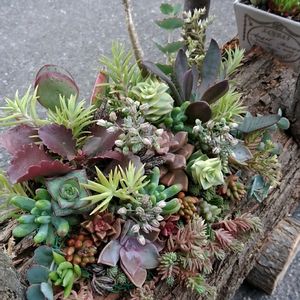機関車の丸太オブジェの3輛目のハーブの寄せ植え。順不同になってしまいましたが機関車オブジェの全体もアップしてますので是非そちらもご覧頂きたいです😄よろしくお願いします