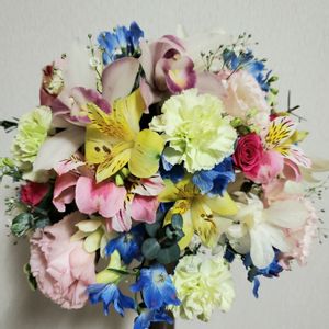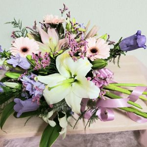 アレンジメント教室の自習課題作品 ブーケを作りました。 全部生花です😃