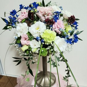 久しぶりのアレンジメント教室の自宅学習課題作品です。 しばらくお休みしてたので結構時間がかかりました。なんとか形にはなってるかなぁ? 自信ないです😵💦