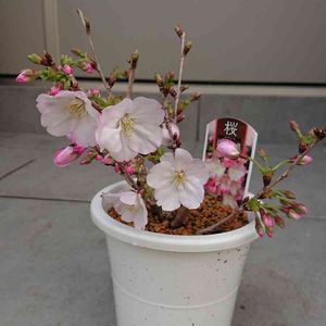 御殿場桜🌸 家の桜🌸も咲き始めました😊 不注意で鉢を割ってしまい慌てて植替えました😢