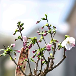 サクラ 御殿場桜 今年1月初めて憧れのサクラの苗木を買った。花芽が沢山ついていたから、満開のお姿がみたくなりまして。欲望の赴くままに購入。 今ようやく蕾が膨らみ始めました🤗🌸✨