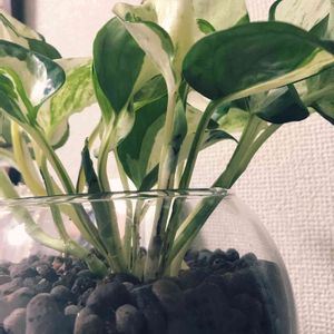 3ポット分のポトスを全部水栽培にしてみました! ダメだパツパツだ/(^o^)\ でもそのおかげで沈まないのです笑 底には流木付けのアヌビアスナナを沈めてます! もっと繁ったら水槽を増やそう!そして魚も飼おう笑