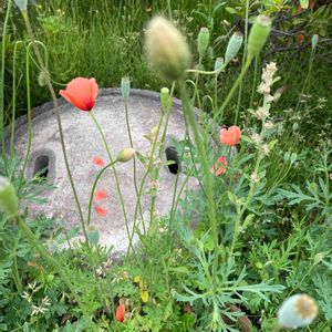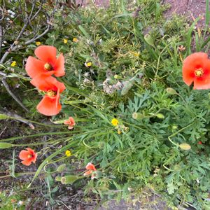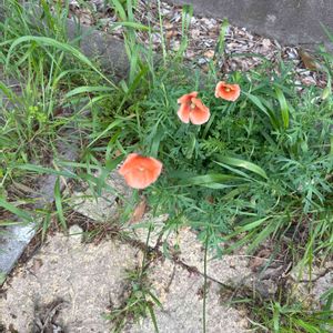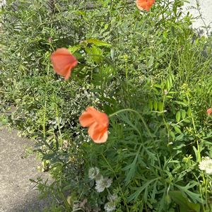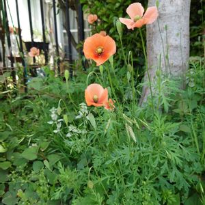 山野草も 色々咲き出し…(。•ᴗ•。)੭⁾⁾* 💜セリバヒエンソウ 芹葉飛燕草 キンポウゲ科 ヒエンソウ属 群生が綺麗です 🧡ナガミヒナゲシ 長実雛罌粟 ケシ科 ケシ属 こぼれ種で拡大中…