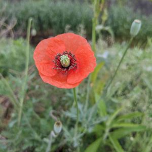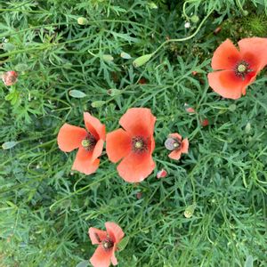 うちの庭のナガミヒナゲシさんではないです🤗 道端で6枚の花びらの ナガミヒナゲシさんを見つけました👀 圧倒的に4枚なんですが たまに出るのかしら❓