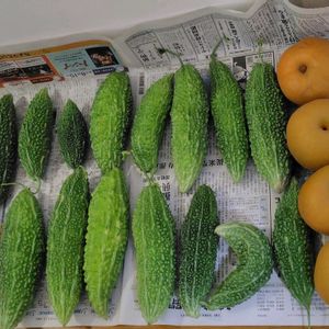 最後のゴーヤと梨が実家から届きました✨ もうゴーヤは無いと思っていたので嬉しい😊 ゴーヤの佃煮をこれから作ります😋