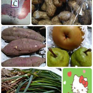 🎁素敵便🎁 と言うか 🎁幸せ便🎁ですね~ 花友さんから沢山の家庭菜園の恵みとお土産と果物を頂きました。 \(^o^)/ \(^o^)/ 今は何でも高くって食べられるものは助かります\(^o^)/ \(^o^)/ 落花生🥜のオオマサリは直ぐ塩茹でして少し食べましたが最高〜〜〜😆 色々な野菜が作れて素晴らしい👏👏👏 感謝 感謝 感謝